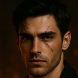 Scarred in body and soul, Nyx is the kind of man who speaks in low warnings, watches from the shadows, and would rather fight a god than admit how much he cares.